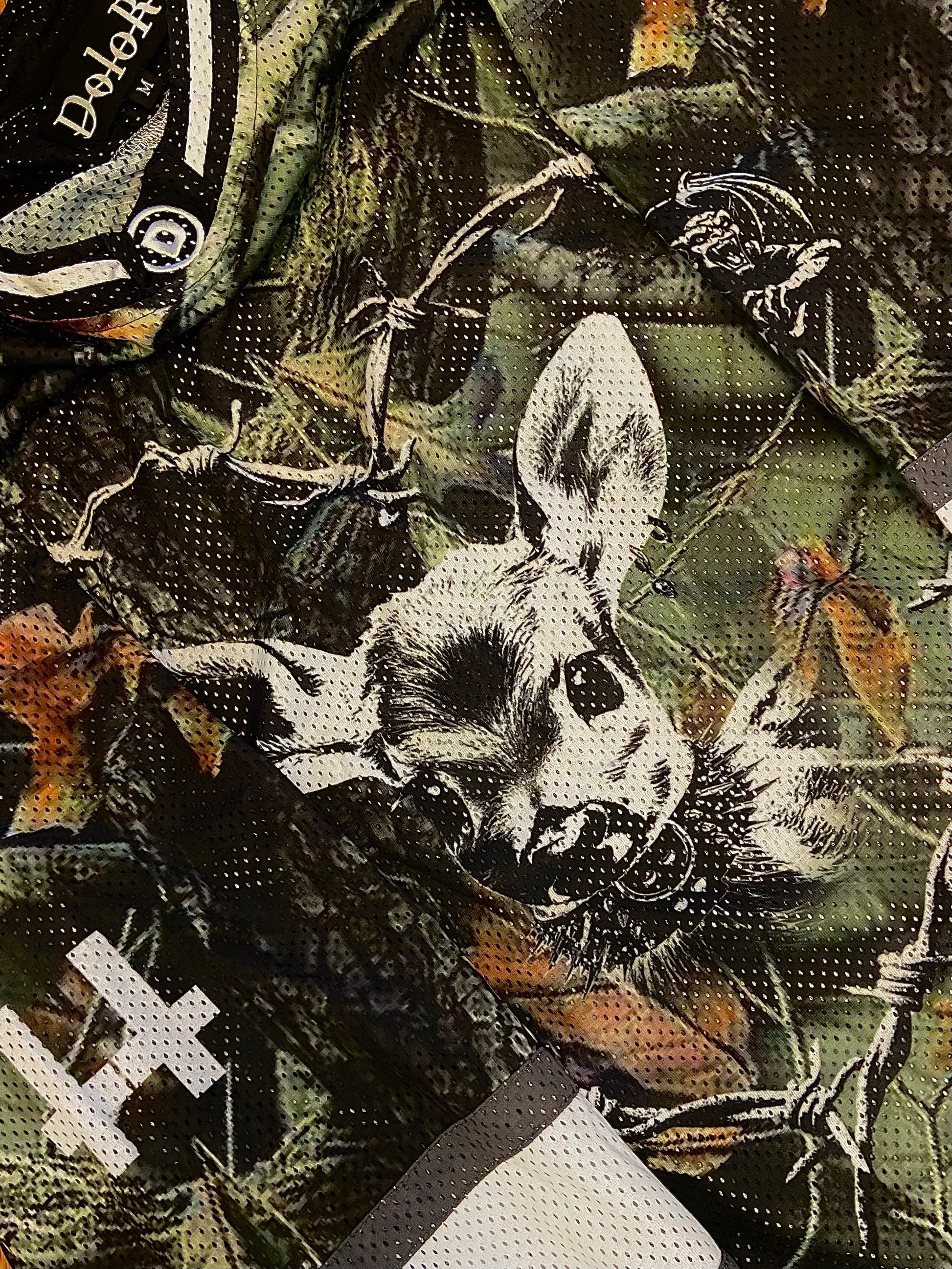 · Real Tree Mesh jersey top with printed motifs on front, sides, and back